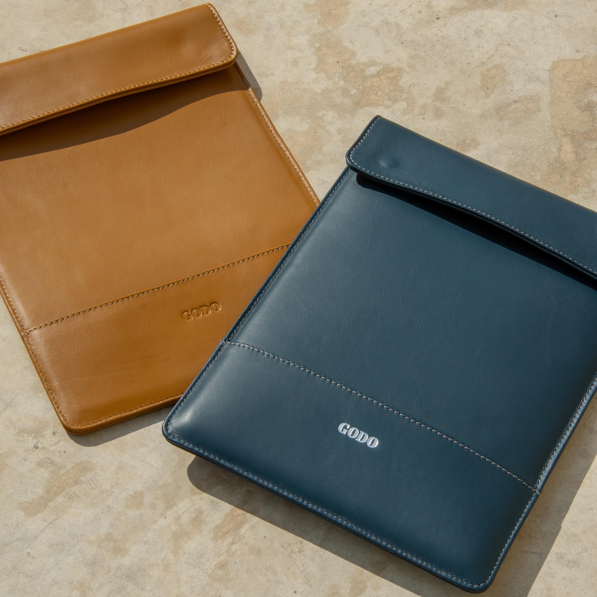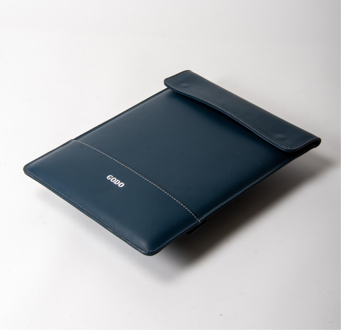 The laptop case resembles an oversized all padded envelope. Customized to fit the conventional work laptop dimensions, the leather laptop case is functional with a sleek, and elegant touch. Secured with leather snaps, it keeps the laptop safely enclosed, while the tone-on-tone stitching along the edges ensures durability and a refined finish.